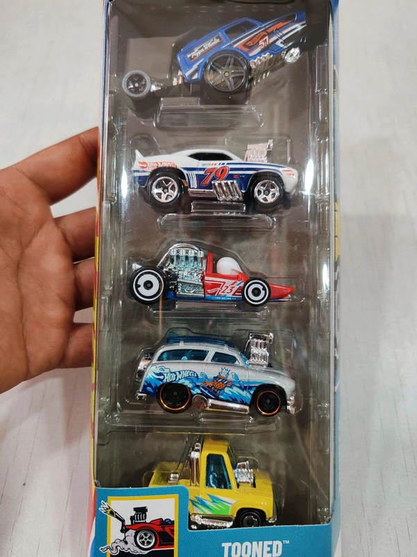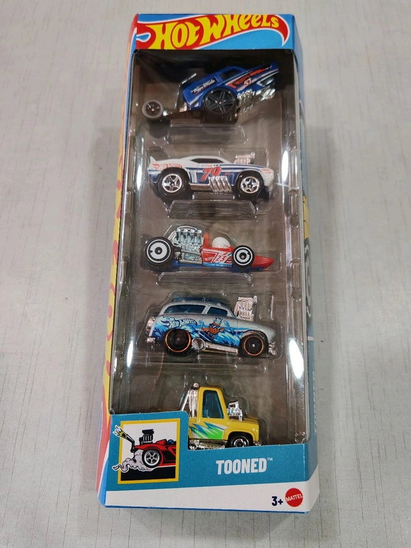 Hot Wheels TOONED Pack of 5 ( SURF 'N TURF | TOON'D" '83 CHEVY | SILVERADO HW POPPA WHEELIE |'69 CAMARO Z28 | HEAD STARTER)