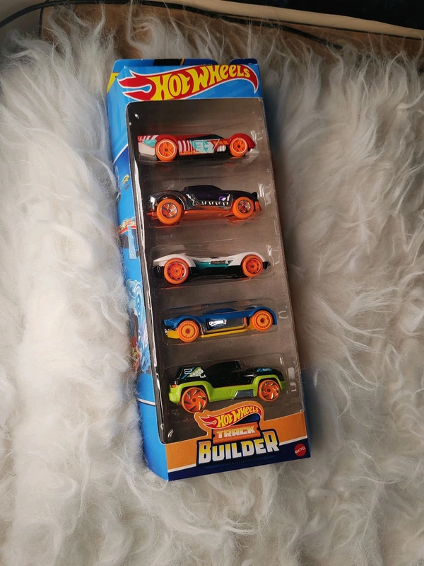 Hot Wheels TRACK BUILDERS Pack of 5 ( GRUPPO x24 | LIGHTNIN' BUG | ROADSTER BITE | MACH IT GO | DRONE DUTY )
