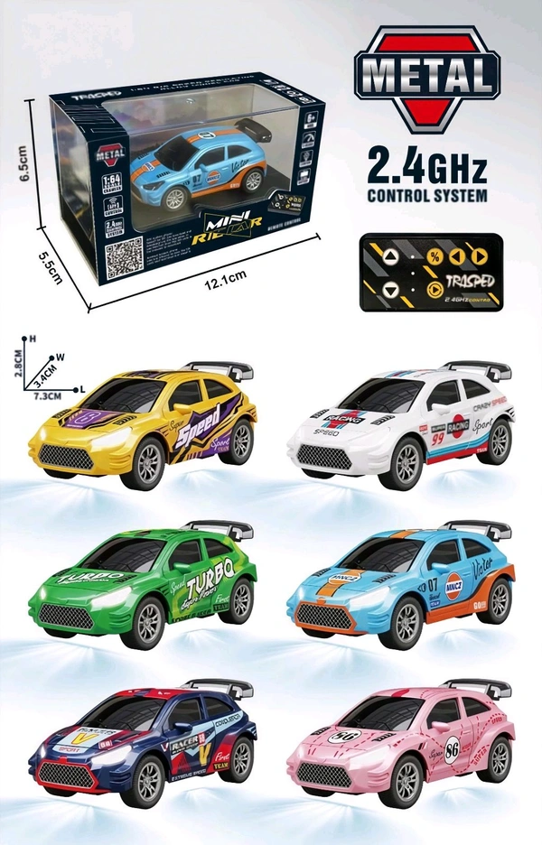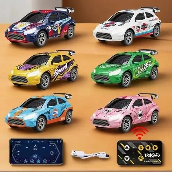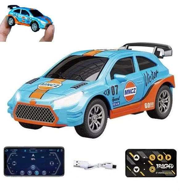 Mini Die-Cast RC Car 1:64 Scale | High-Speed Desktop Remote Control Car with LED Headlights | 2.4GHz Mini Controller, 15m Range, Type-C Charging