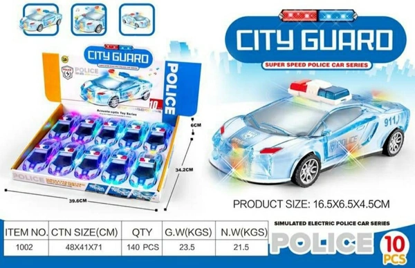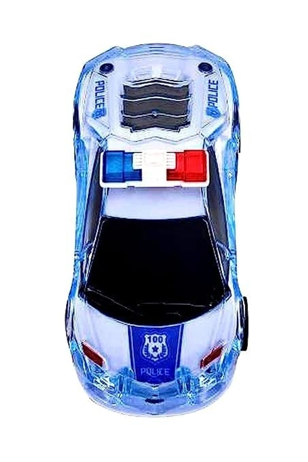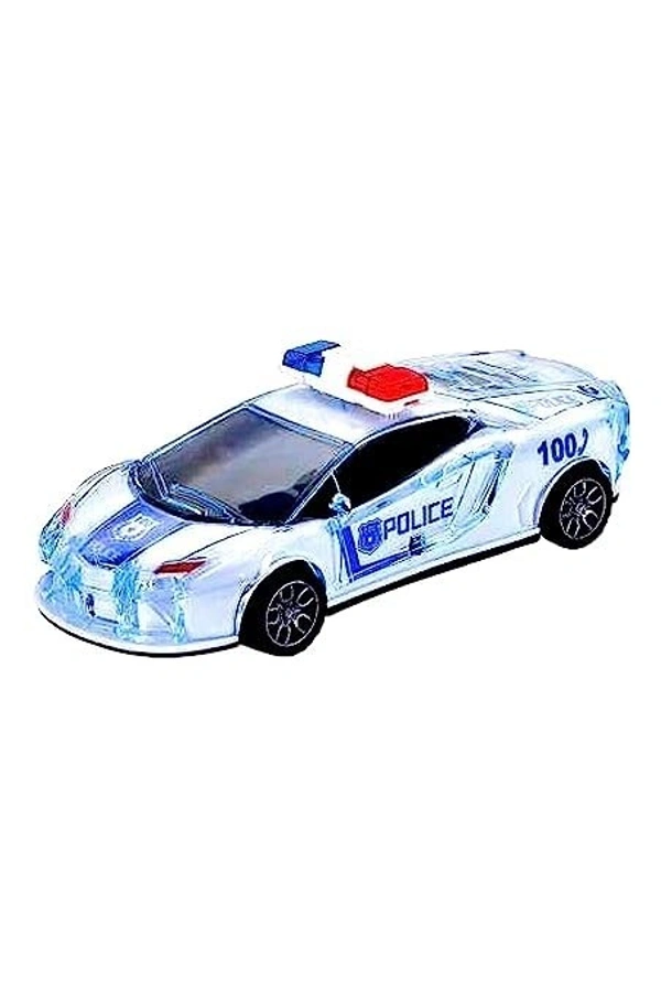 Police Super 3D Car with Lights Friction Music and Siren Sound Colorful Dazzling Light White & Blue for Boys & Girl's Gift Toy Pack of 1
